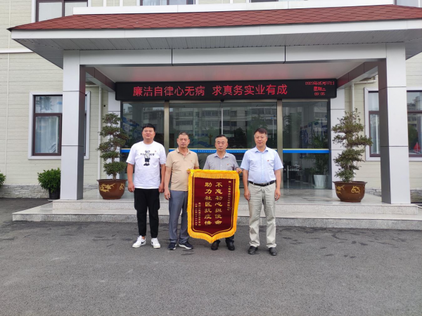 在中國共產黨建黨102周年來臨之際,阜陽市潁泉區雙河社區第一書記戴小寶攜社區工作人員來到阜陽市水利工程有限公司,送上繡有“不忘初心擔使命,助力社區抗疫情”字樣的錦旗,以此感謝市水利工程有限公司在抗擊新冠疫情、創建全國文明城市工作中對社區的志愿幫扶和資金援助。