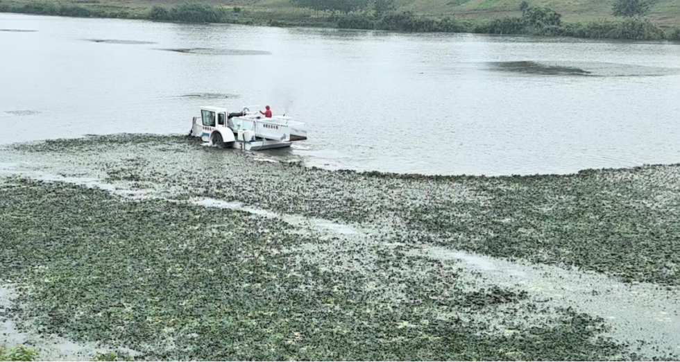 清理現場,兩款“神器”格外惹人注目。全自動割草船作為水域清潔的“主力”,配備智能切割裝置,可根據水草生長情況自動調節切割深度與速度,避免傷及魚蝦等水下生物,船艙單次載重達4噸,大大提高了清理效率。多功能水面清理長臂船是打撈藍藻的“利器”,可遙控機械長臂能靈活覆蓋不同水域,打破傳統作業半徑限制,收集臂與吸藻泵協同運作實現藍藻精準捕捉,經藻水分離系統處理后形成藻泥,便于轉運處理。